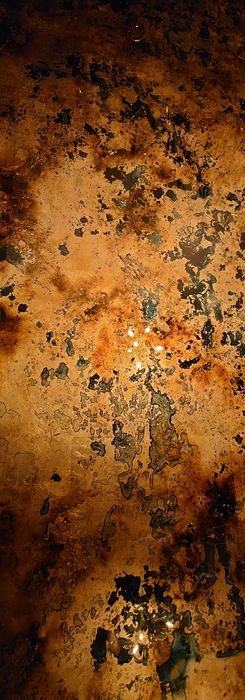 Elevate your home with the exquisite Gilded Splashback. This large feature piece combines luxury and beauty through verré églomisé techniques while the subtle coloured patinas adds a refined touch, creating an elegant visual statement that is sure to impress guests and transform any space into a work of art.